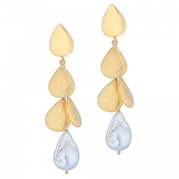 Gli Orecchini gocce di perle Bonton sono costituiti da perle barocche con elementi in argento sabbiato a forma di gocce. Hanno una lunghezza di 3,5cm.