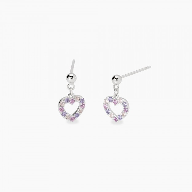 Orecchini da bambina dolci e luminosi, realizzati in argento 925 rodiato con pendenti a cuore decorati da tormaline rosa sintetiche e zirconi...