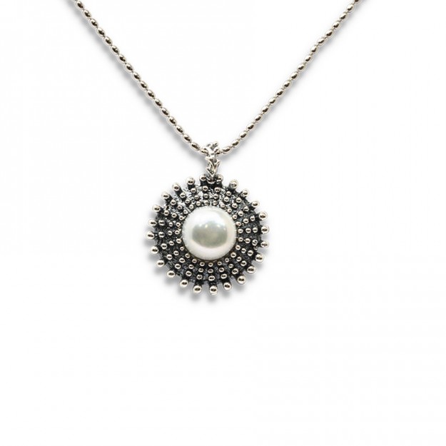 Collana in argento con margherite scolpite: un prato fiorito che illumina il décolleté con eleganza e naturale armonia. Delicata, luminosa, senza...
