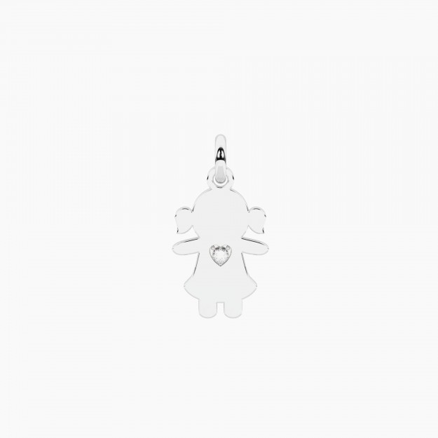 Ciondolo bimba in acciaio con cuore in cristallo.• Dimensione ciondolo: 10,2x16,2 mm• Diametro cristallo: 1,75 mm• Materiale: Acciaio 316L, Cristallo