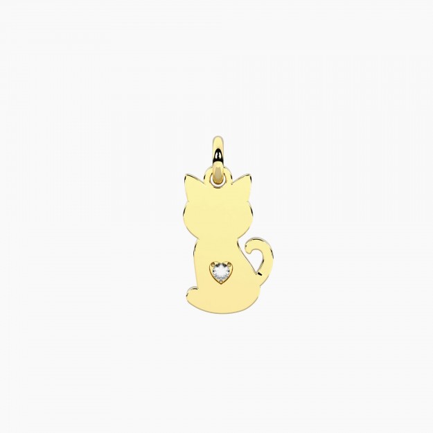 Ciondolo gatto in acciaio dorato con cuore in cristallo.• Dimensione ciondolo: 9x15 mm• Diametro cristallo: 1,75 mm• Materiale: Acciaio 316L,...