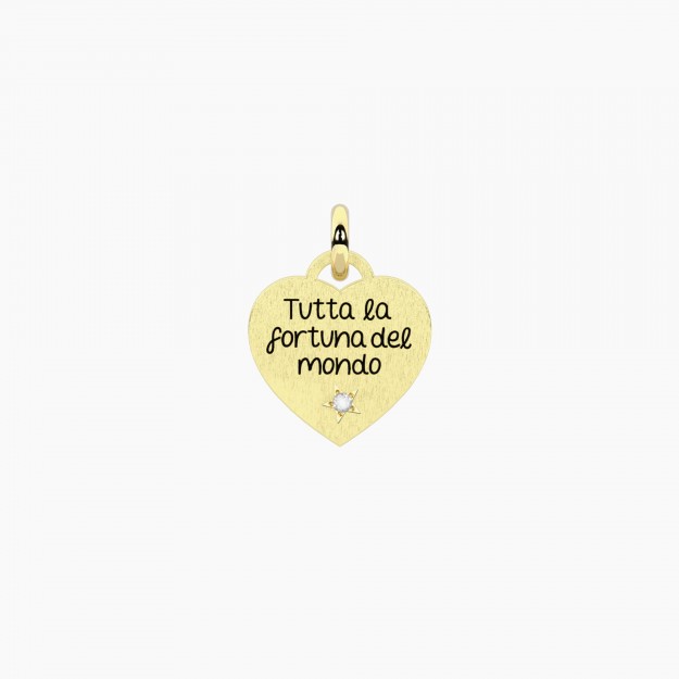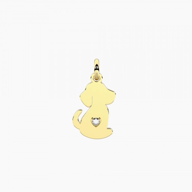 Ciondolo cane in acciaio dorato con cuore in cristallo.• Dimensione ciondolo: 10,4x16,2 mm• Diametro cristallo: 1,75 mm• Materiale: Acciaio 316L,...