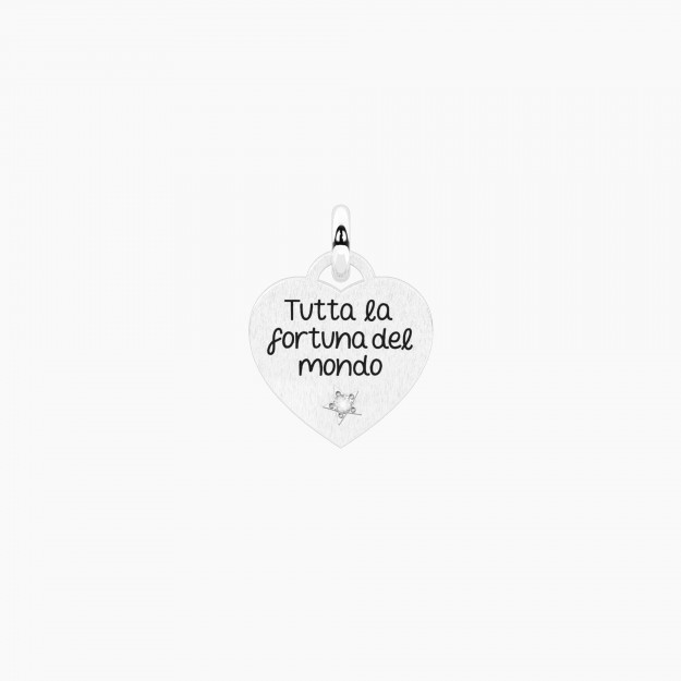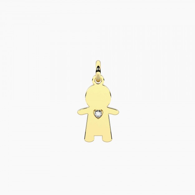Ciondolo bimbo in acciaio con cuore in cristallo.• Dimensione ciondolo: 10x16,2 mm• Diametro cristallo: 1,75 mm• Materiale: Acciaio 316L, Cristallo