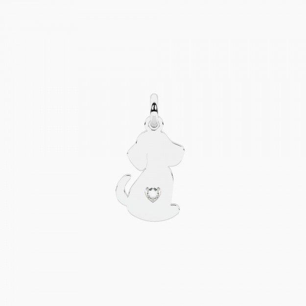 Ciondolo cane in acciaio con cuore in cristallo.• Dimensione ciondolo: 10,4x16,2 mm• Diametro cristallo: 1,75 mm• Materiale: Acciaio 316L, Cristallo