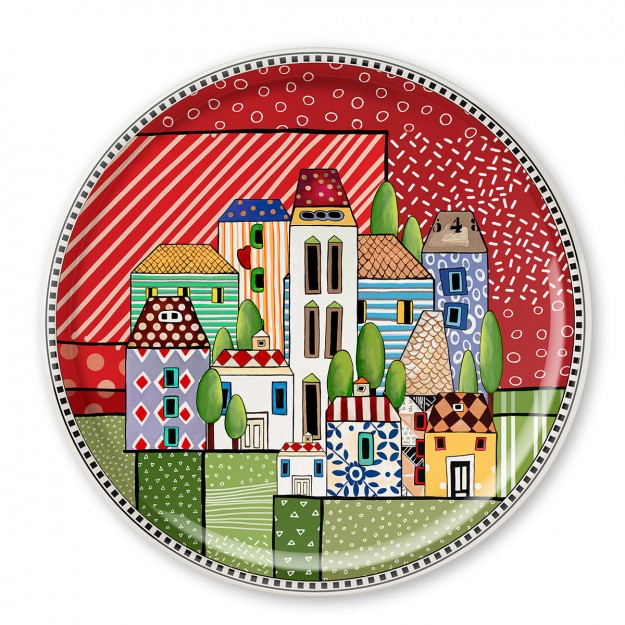 Piatto portata Paese Mio realizzato in stoneware con decoro sottosmalto, unisce resistenza, brillantezza e charme ispirato ai colori dei borghi...