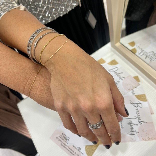 Bracciale in Oro saldato al polso.Tipologia: maglia veneziana sottile in oro 750% giallo.Spessore circa 1,8 mmRealizzabile su misura tramite...