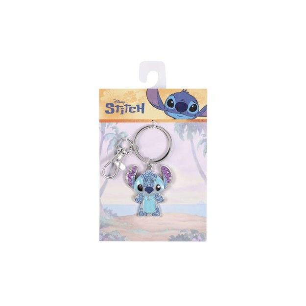Portachiavi Stitch realizzato in ottone con smalto e cristalli colorati.