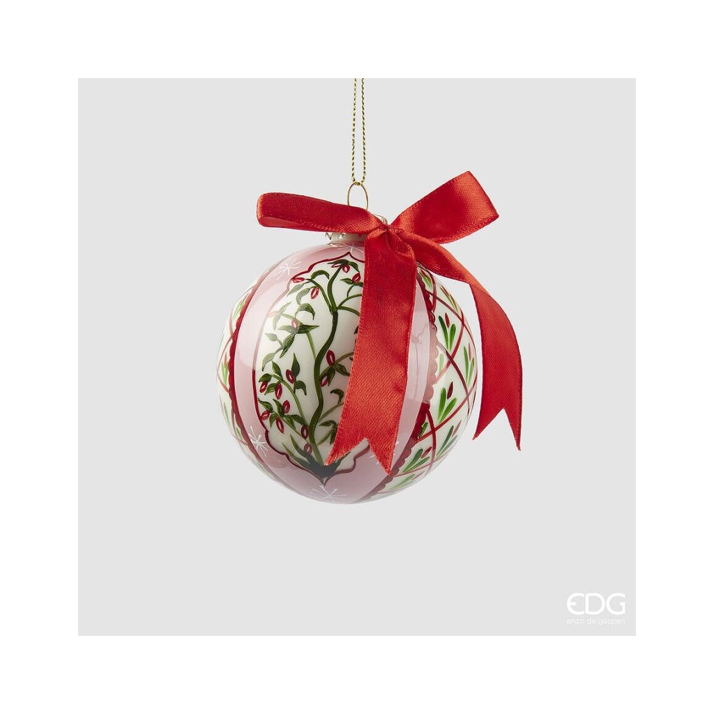 La pallina di Natale Decoflor di EDG è perfetta per aggiungere un tocco di raffinatezza al tuo albero. Con base bianca, è decorata con motivi floreali coi colori del rosso e verde tipici del periodo natalizio. Completa il decoro un tocco di rosa ed un fiocco rosso.