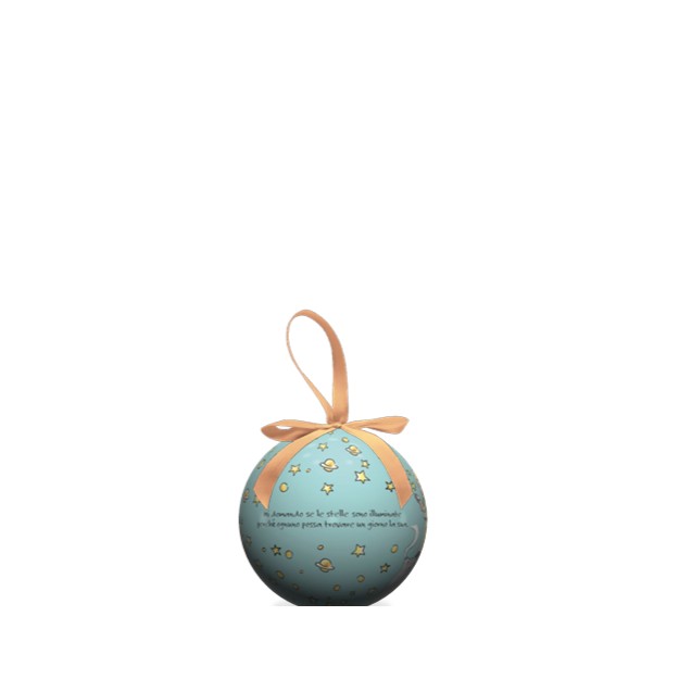 Palla di natale con immagine del Piccolo Principe e frase "Mi domando se le stelle sono illuminate perchè ognuno possa trovare un giorno la sua".