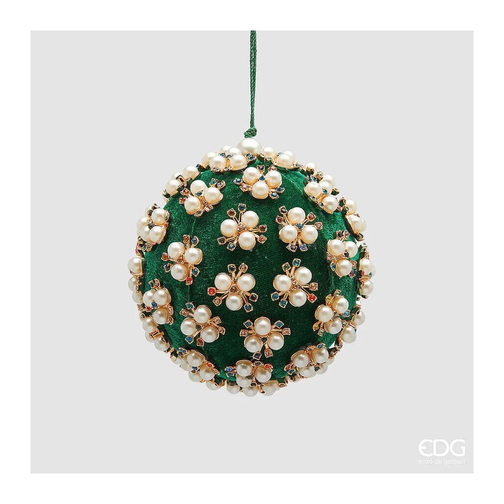 Palla Elisabeth Velluto Verde e Perle D 10 cm