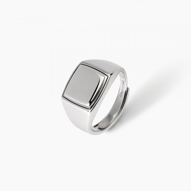 Anello chevalier da uomo in argento rodiato con tavola quadrata.