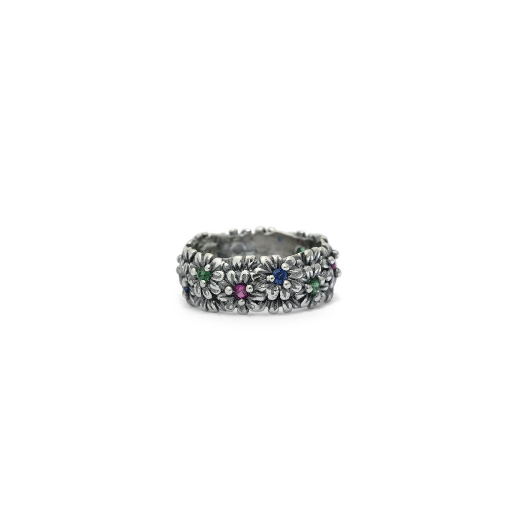 Anello Primule D’Argento pietre multicolor fascia grande mis 12