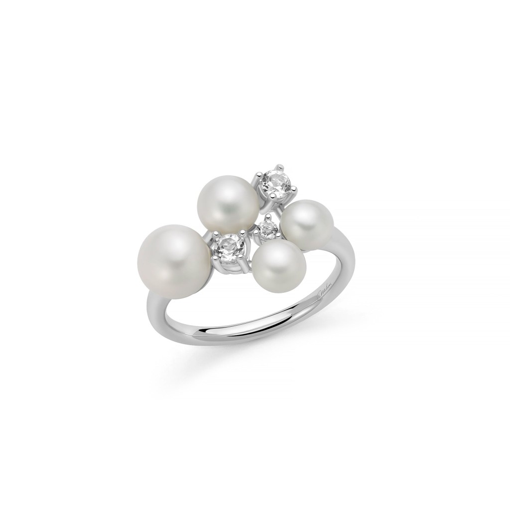 Anello con quattro perle Oriente e topazi bianchi mis 14