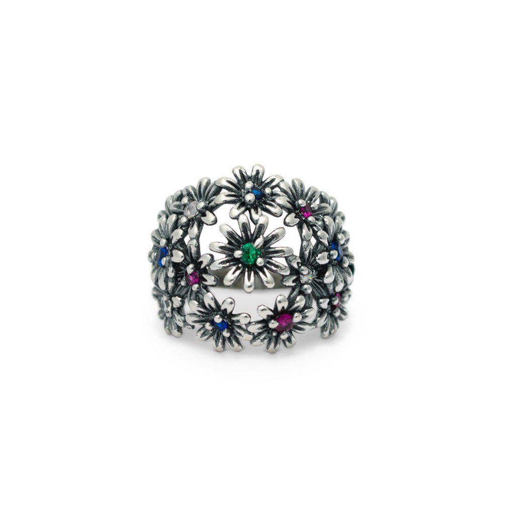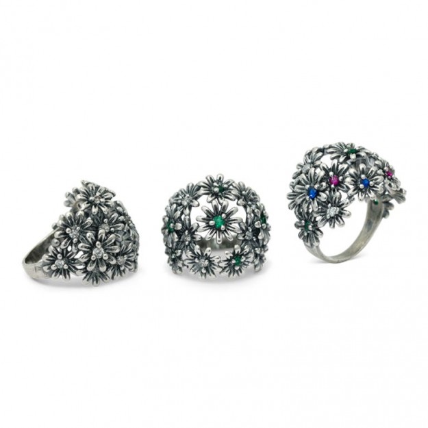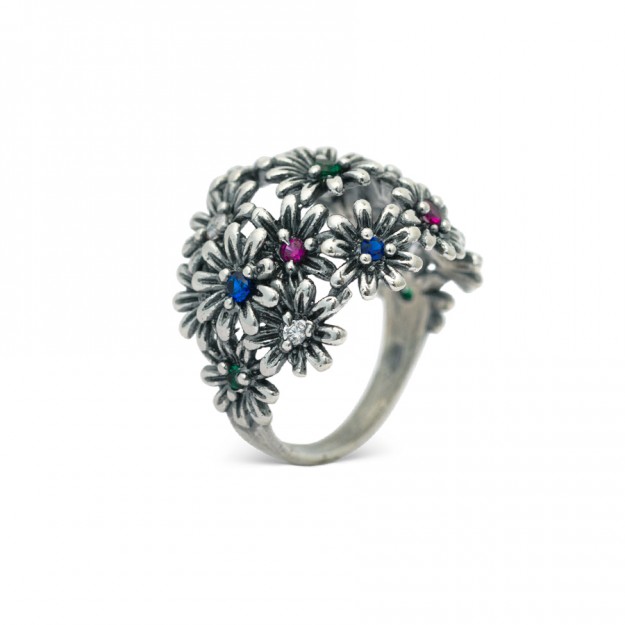 Anello in argento 925 con cuore tempestato di topazi bianchi. Un gioiello dal fascino romantico, valorizzato da un pavé fitto che illumina con...