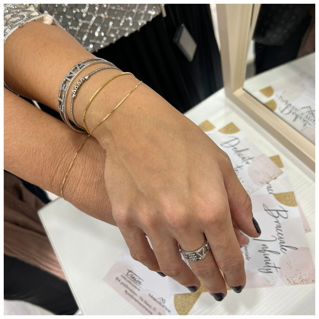 Realizzabile su misura tramite saldatura al polso (effettuabile esclusivamente presso il nostro punto vendita) oppure completandolo con la chiusura (venduta a parte)