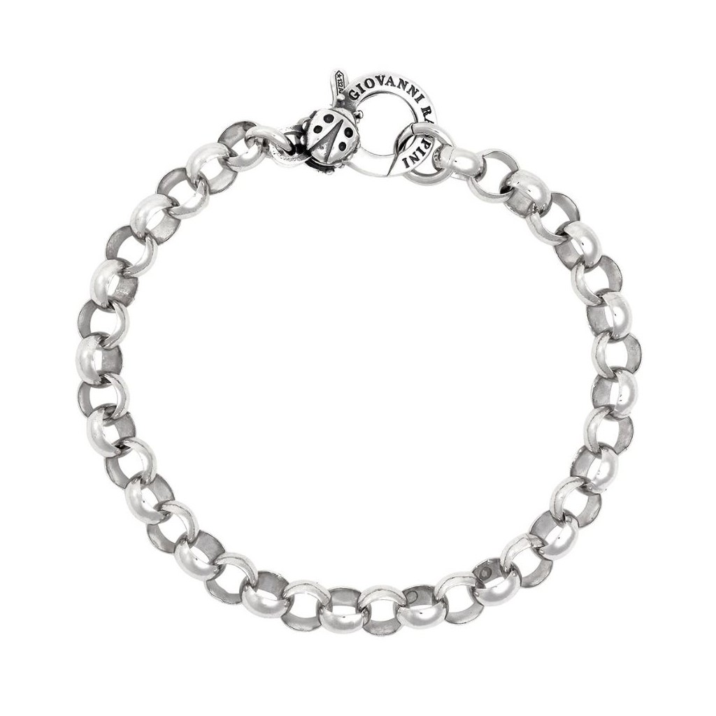 Elegante catena rolò in argento 925, perfetta per accogliere i tuoi charms Giovanni Raspini. Chiusura decorata con una coccinella, realizzata a mano con fusione a cera persa.