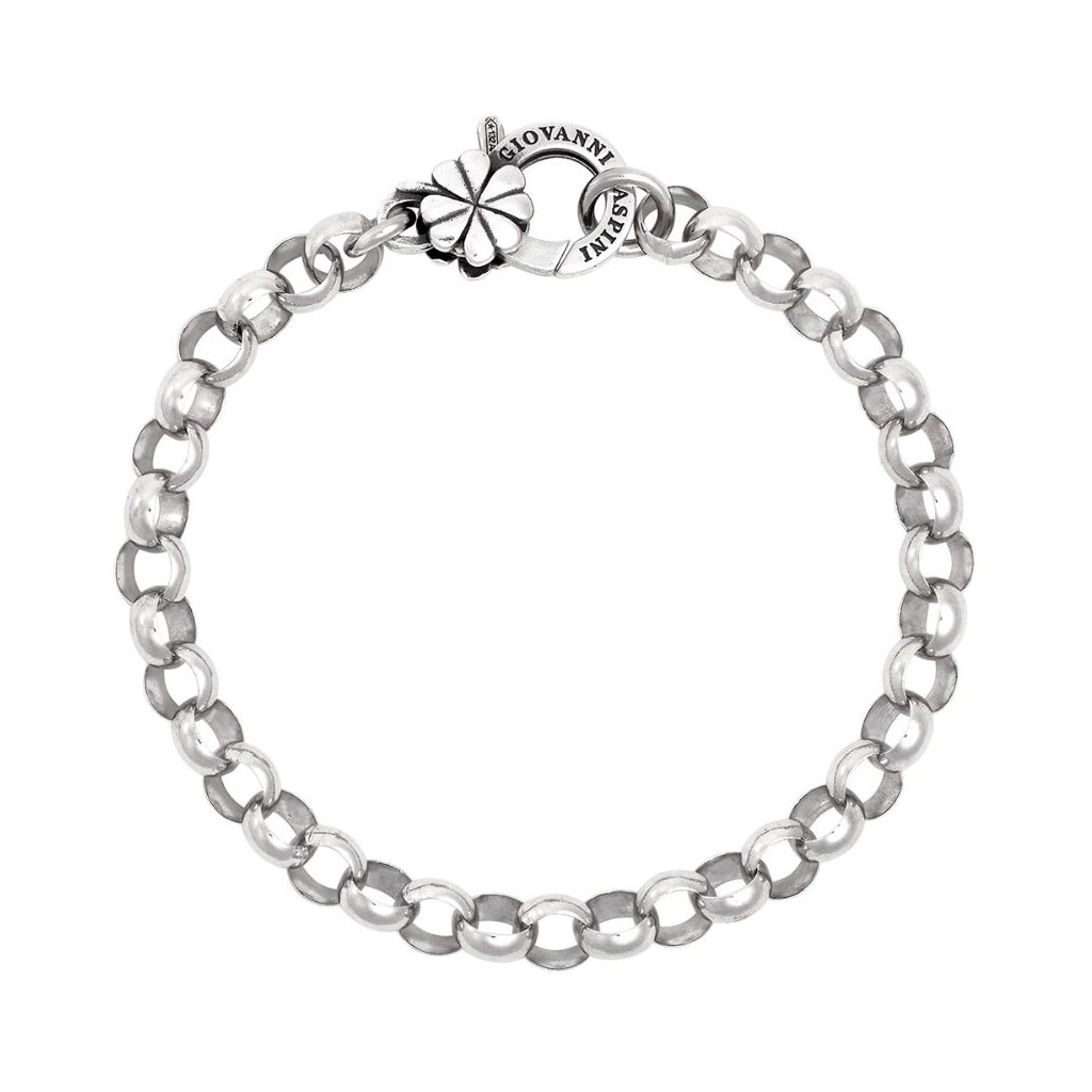 Elegante catena rolò in argento 925, perfetta per accogliere i tuoi charms Giovanni Raspini. Chiusura decorata con un quadrifoglio, realizzata a mano con fusione a cera persa.