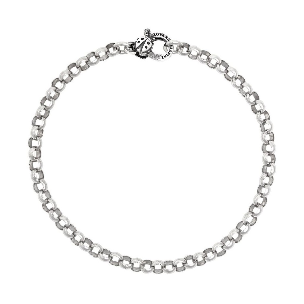 Bracciale base in argento con catena rolò, realizzato artigianalmente. Perfetto per accogliere i tuoi charms preferiti, è impreziosito da una coccinella decorativa fusa a cera persa sulla chiusura.