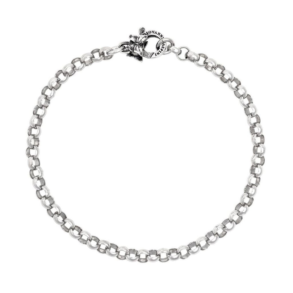 Bracciale base in argento con catena rolò, realizzato artigianalmente. Perfetto per accogliere i tuoi charms preferiti, è impreziosito da una farfalla decorativa fusa a cera persa sulla chiusura.