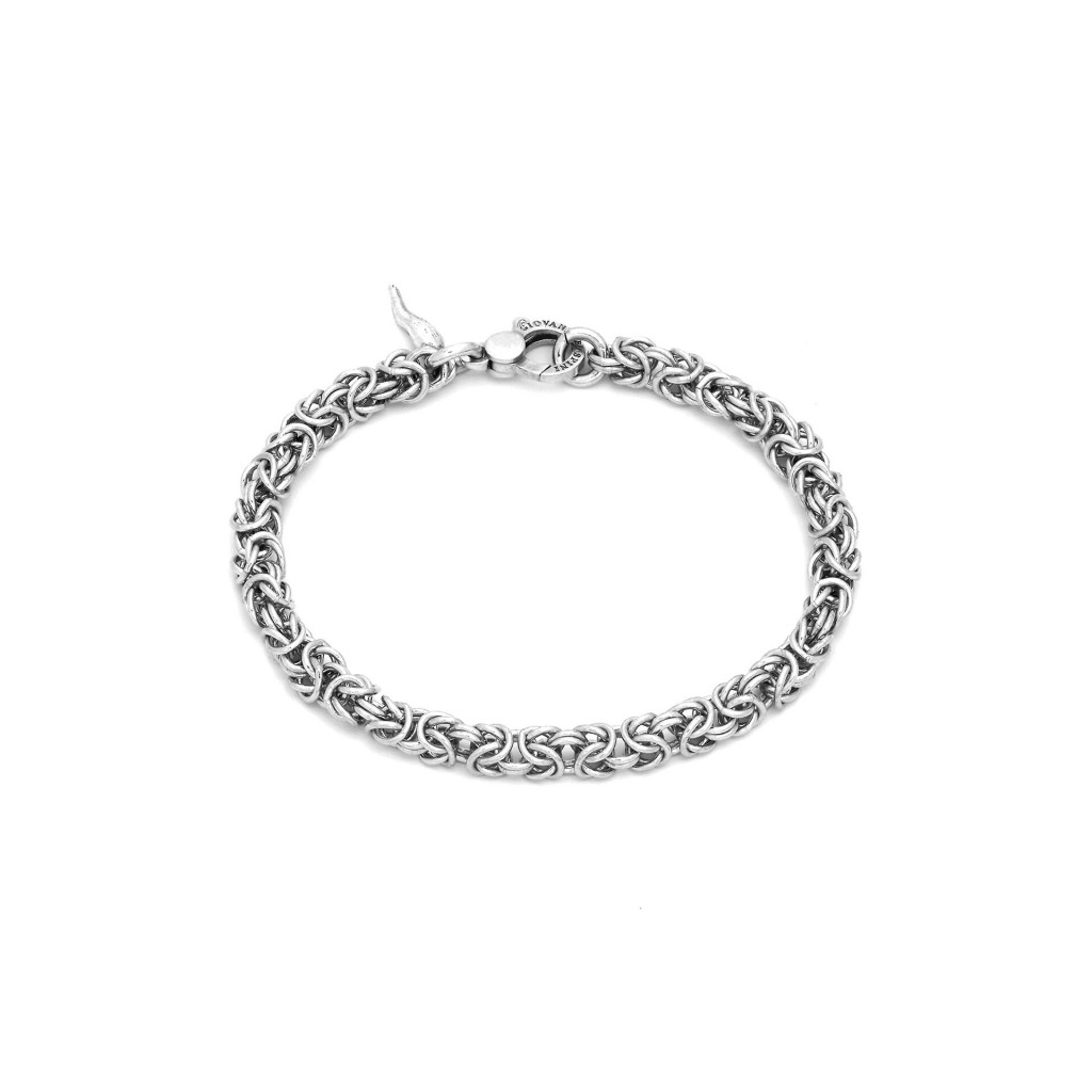 Una catena iconica, che ha segnato la storia della gioielleria, si trasforma in un raffinato bracciale in argento. E' la maglia bizantina in versione mini, lavorata artigianalmente. Con il suo particolarissimo ed elegante intreccio, rappresenta da sempre uno dei best seller della Maison Giovanni Raspini. Un gioiello versatile che si presta ad un indosso sia maschile che femminile.