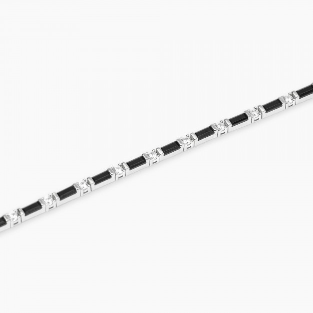 Bracciale tennis regolabile in argento rodiato con zirconi neri taglio baguette e zirconi bianchi.