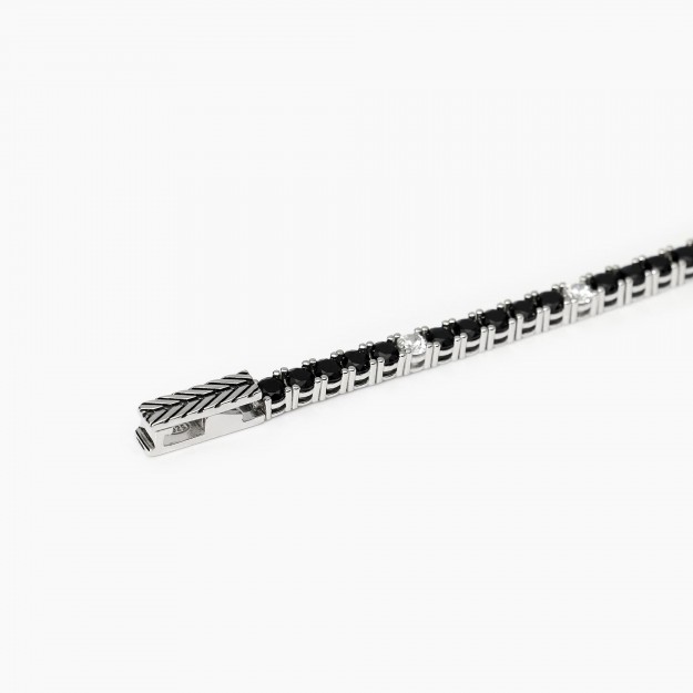 Bracciale tennis da uomo in argento brunito con zirconi alternati bianchi e neri.