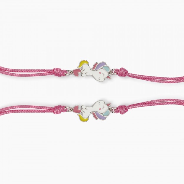 Set di due bracciali amicizia con cordino in nylon rosa con unicorno smaltato.