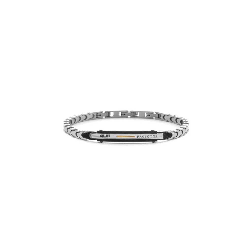 Bracciale da uomo in acciaio con targhetta centrale logata con inserto centrale in oro 18 kt, con struttura a maglie e lunghezza regolabile da 18 a 21 cm. Un accessorio resistente e moderno, perfetto per completare il look quotidiano con stile essenziale ed elegante.