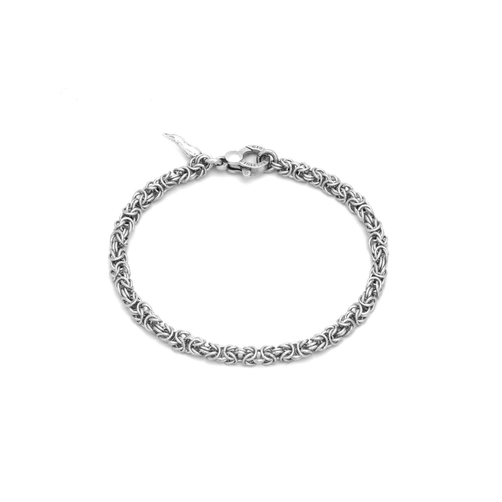 Una classica catena che ha fatto la storia della gioielleria, da sempre best seller del brand, diventa prezioso bracciale in argento. E' la maglia bizantina in versione mini mini, lavorata artigianalmente, col suo particolarissimo ed elegante intreccio. Un gioiello versatile che si presta ad un indosso sia maschile che femminile.