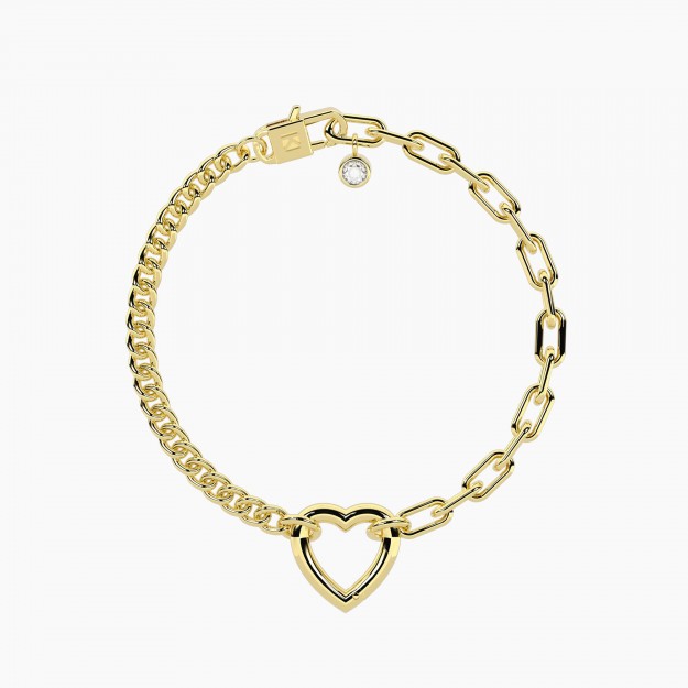 Bracciale componibile e regolabile con catena groumette e a maglie allungate in acciaio dorato. Inserisci nel link a cuore da 1 a 2 charm.