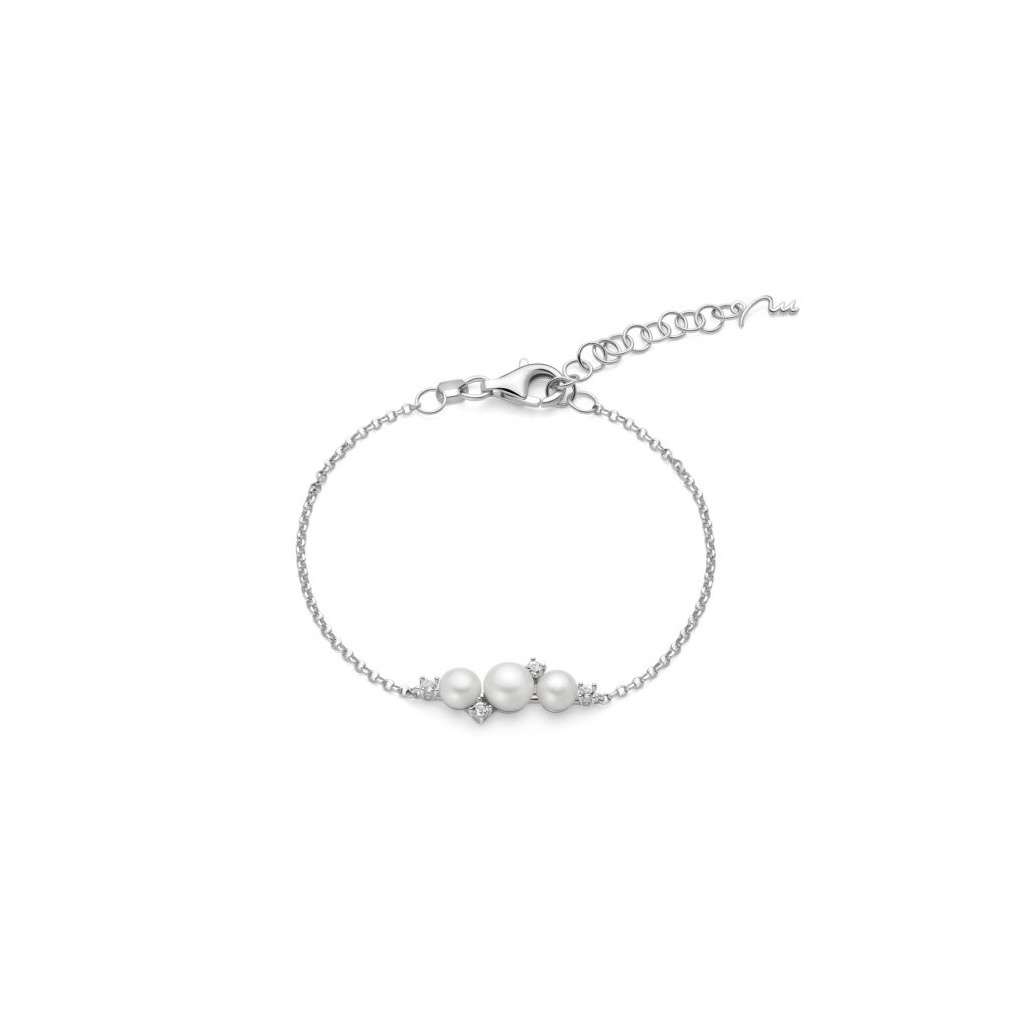Bracciale regolabile da uomo in argento rodiato con catena groumette diamantata e piastra centrale con elemento placcato oro rosa e zirconi...