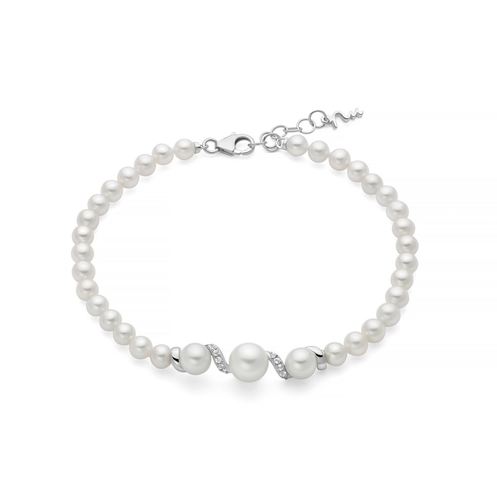 Bracciale di perle con lavorazione centrale in argento e topazi