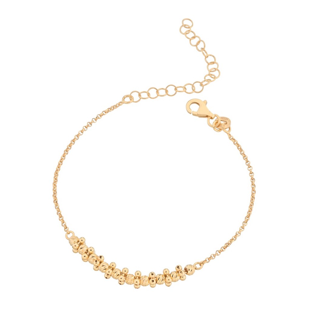Il Bracciale minimal trionfi di boules Petite Boules è in argento 925 dorato e realizzato con sfere diamantate.