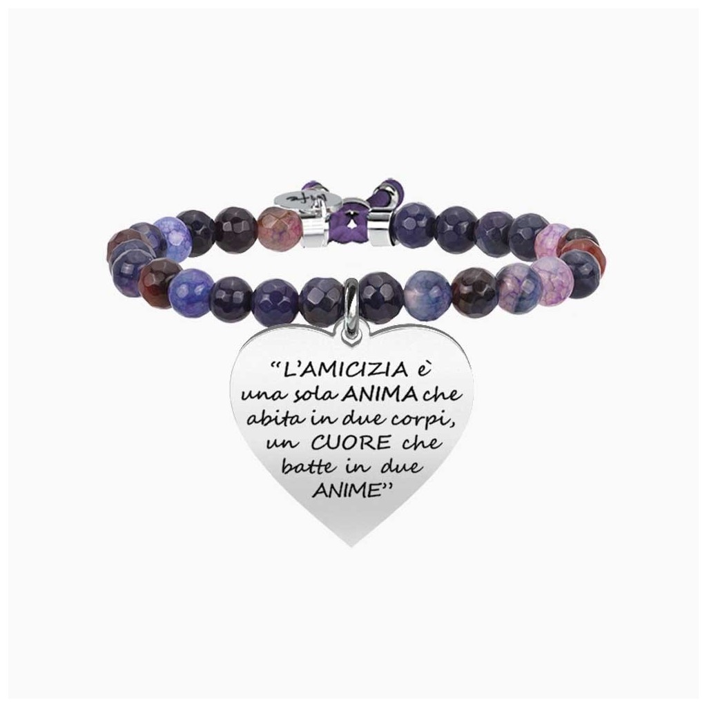 Bracciale elastico con sfere sfaccettate agata multicolor blu e ciondolo a cuore in acciaio.