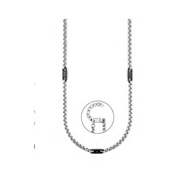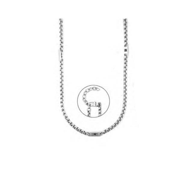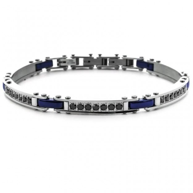 Bracciale da uomo realizzato in acciaio anallergico con finitura rodiata e inserti in ceramica blu e file di zirconi neri.Lunghezza totale di 22...