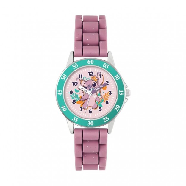 Orologio solo tempo per bambini con cassa in lega da 33 mm color argento e quadrante multicolor decorato con Angel. Lunetta verde con numerazione...