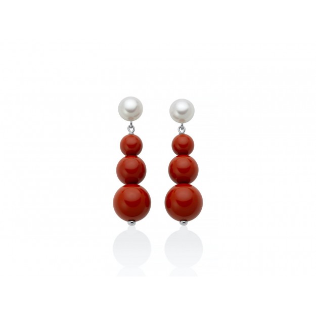 Orecchini Pendenti Perle e agglomerato rosso