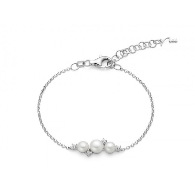 Raffinato gioiello in argento 925 impreziosito da perle vere d’Oriente e topazi bianchi naturali. Il design elegante valorizza perle da 6–6,5 mm e...