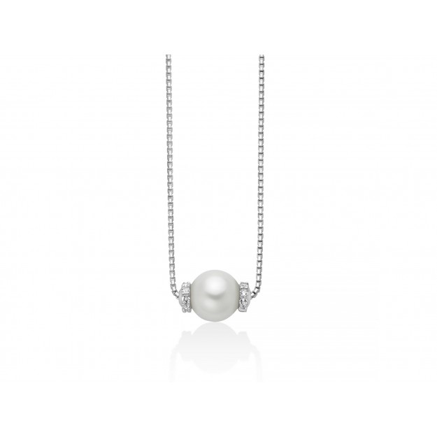 Orecchini della collezione TERRA E MARE realizzato in argento 925 placcatura rodio silver. Gli orecchini sono impreziositi al lobo da due perle...