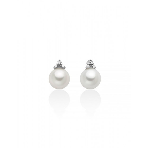 Orecchini della collezione TERRA E MARE realizzato in argento 925 placcatura rodio silver. Gli orecchini sono impreziositi al lobo da due perle...