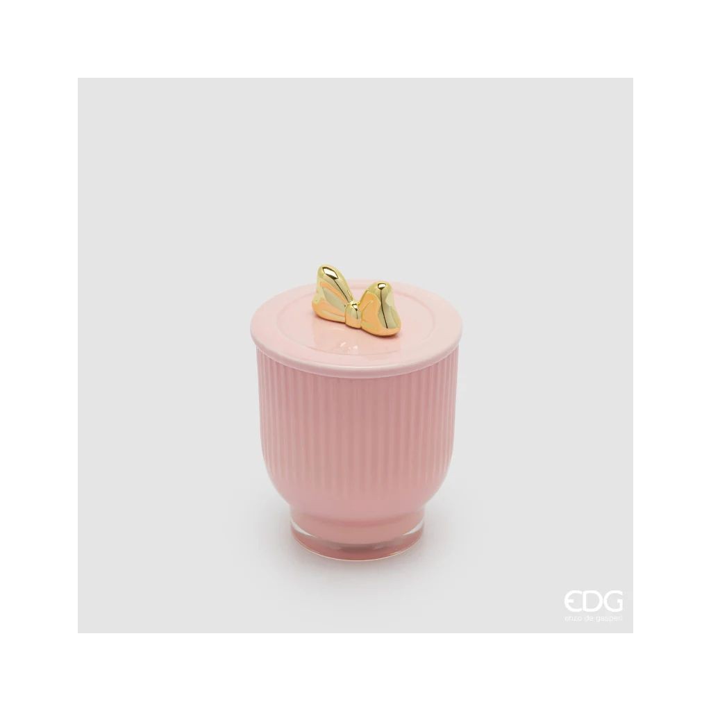 Elegante candela decorativa in vetro rosso lucido con finitura a costine e coperchio con fiocco dorato. Una profumazione fruttata e avvolgente ai...