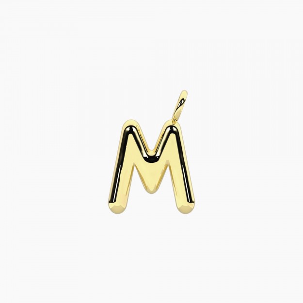 Ciondolo in acciaio dorato a forma di lettera "M".