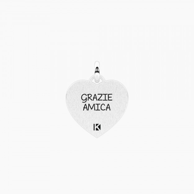 Ciondolo a forma di cuore in acciaio e PVD giallo satinato con cristallo bianco e scritta "Mamma non ti voglio perfetta, ti voglio felice".•...