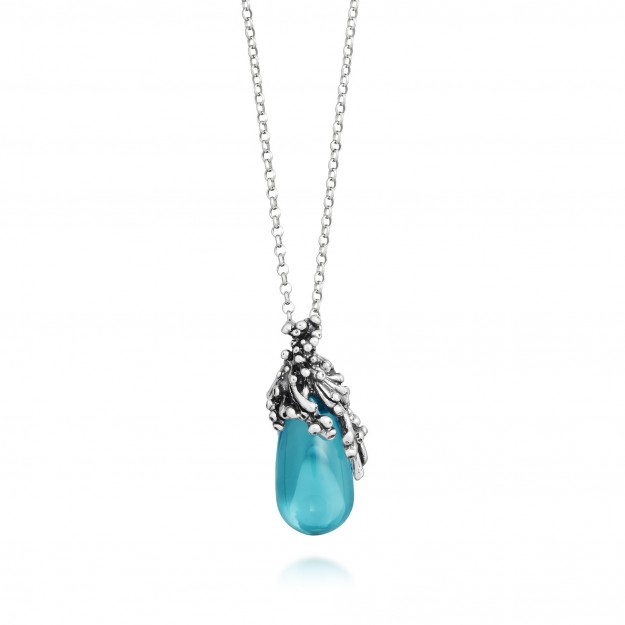 Girocollo in acciaio 316L con catena forzatina e ciondolo pendente smeraldo sintetico 6x4 mm e cristalli Ø 1.25 mm. Lunghezza regolabile da 38 a 43 cm.