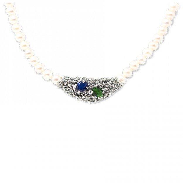 Collana sagoma bimba in oro giallo 9kt con perle da 3-3,5 mm e diamante da 0,005 ctMisura: 40, 42 cm