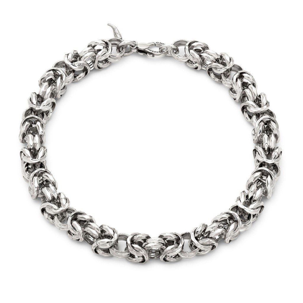 Collana Bizantina Luce Maxi in argento, realizzata a mano. Maglie bizantine sfaccettate che riflettono la luce con intensità, per un design imponente e luminoso firmato Giovanni Raspini.