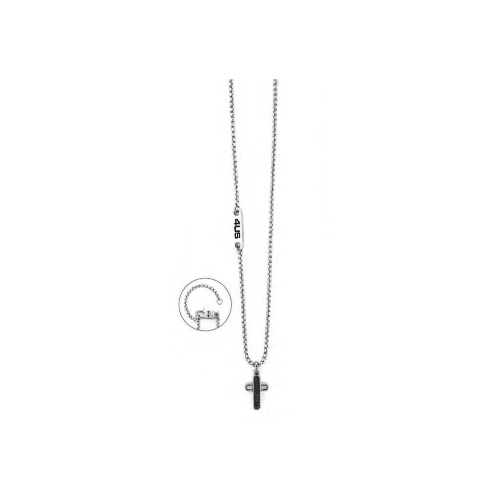 Collana realizzata in acciaio inossidabile con croce con elemento in PVD nero con incastonati zirconi neri