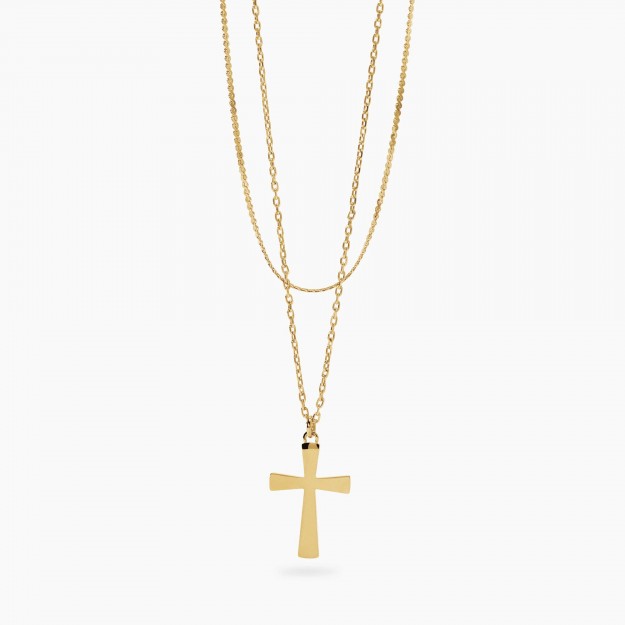 Girocollo regolabile in acciaio dorato con catene serpentina e forzatina diamantata, con pendente croce.• Dimensione catena serpentina: 1,3 mm•...