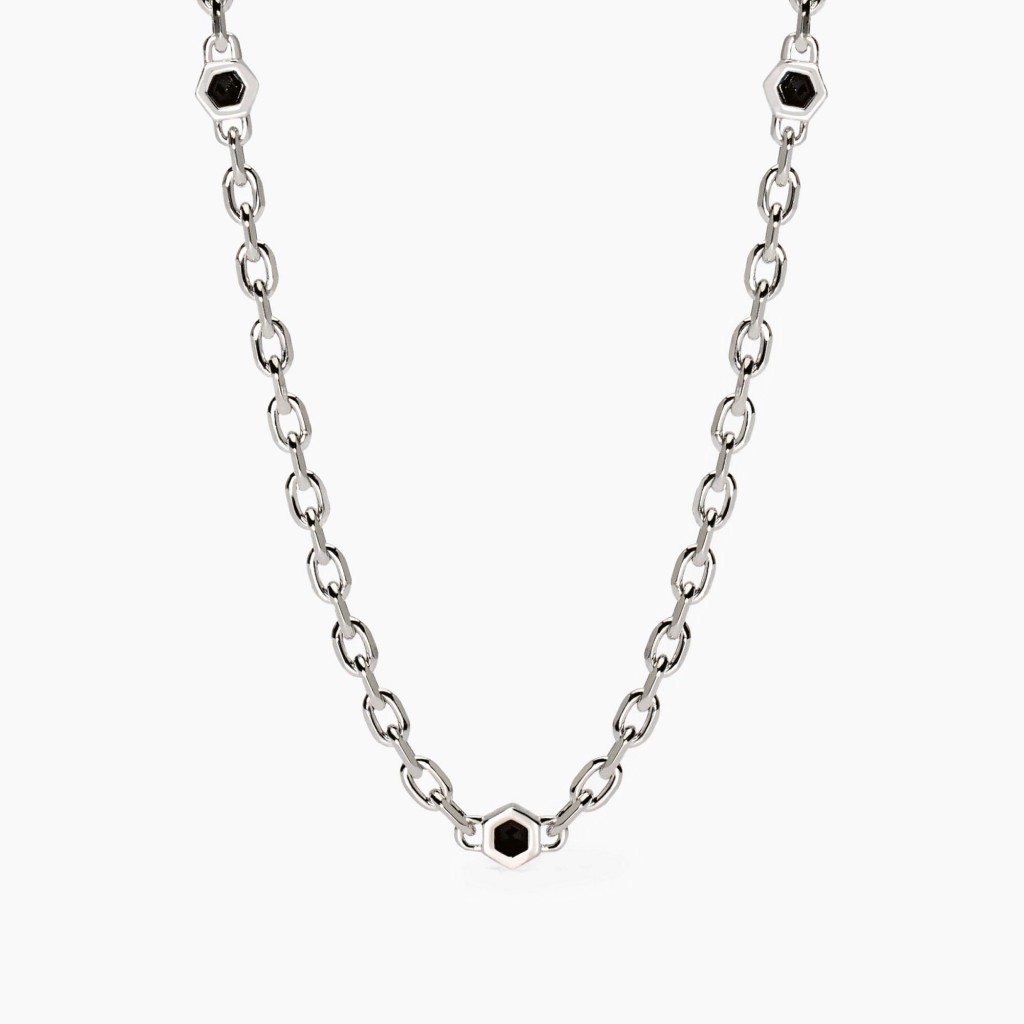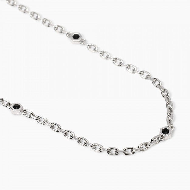 Collana lunga con catena forzatina fantasia, malachite verde e chiusura a moschettone. Lunghezza 113 cm. La catena fine e leggera è pensata per...