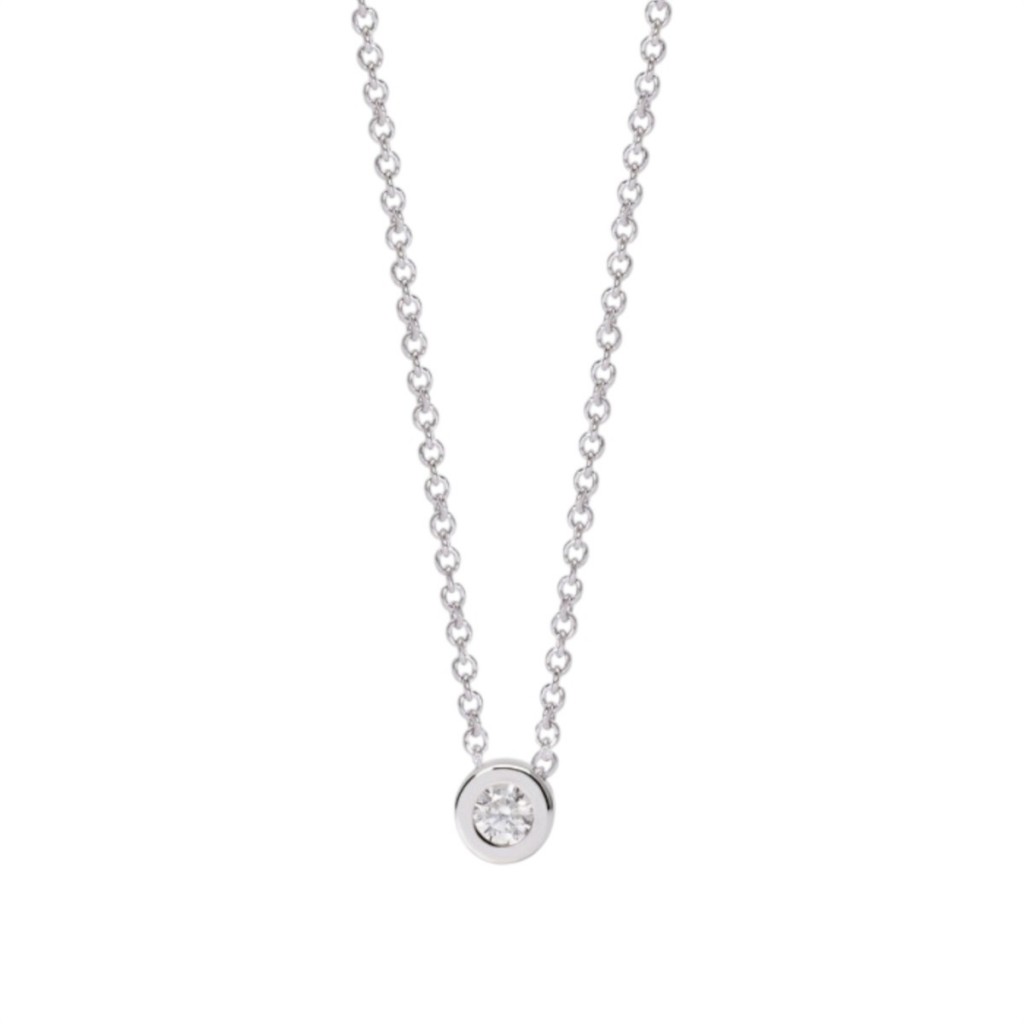 Collana punto luce Mabina in argento 925 rodiato con diamante lab-grown da 0,08 ct incastonato in un elegante cerchio. Un gioiello raffinato e sostenibile, simbolo di luce, purezza e stile senza tempo.